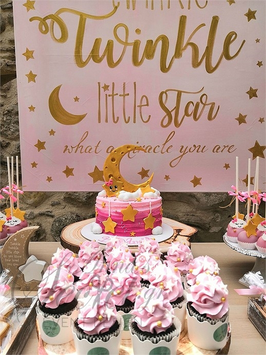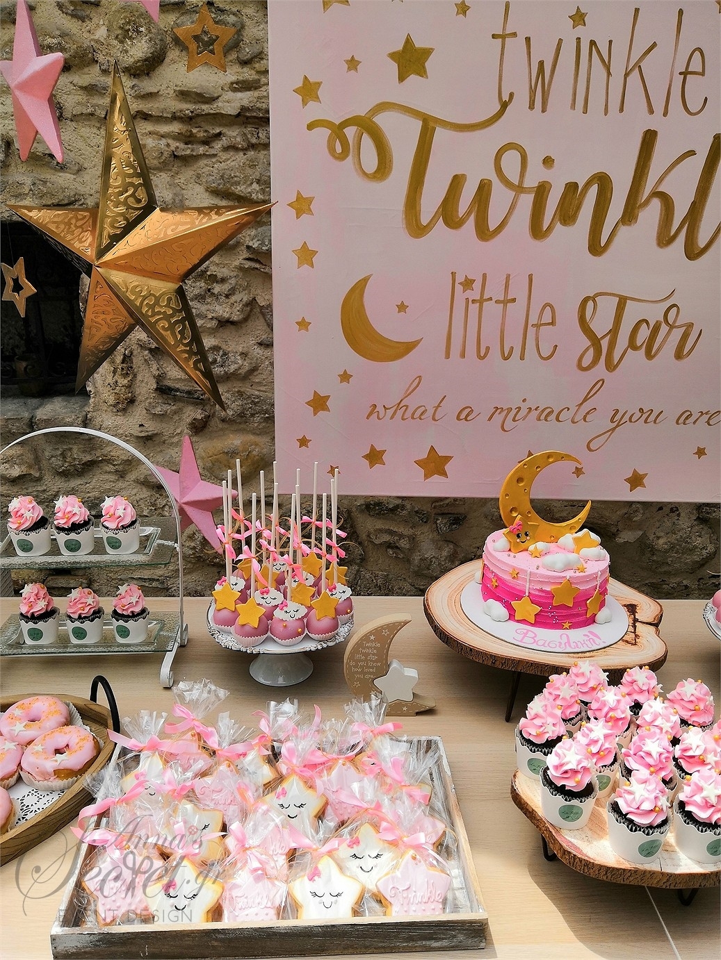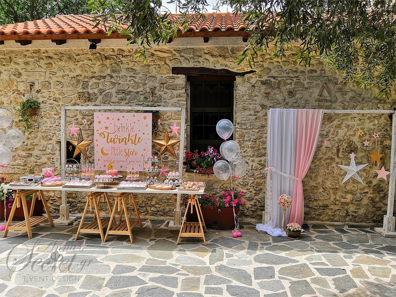 Στολισμός βάπτισης για κοριτσάκι σε συνδυασμό με candy bar με θέμα το αστέρι.